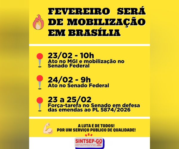 Nos dias 23, 24 e 25 de fevereiro a Condsef/Fenadsef convoca atividades de mobilização no…